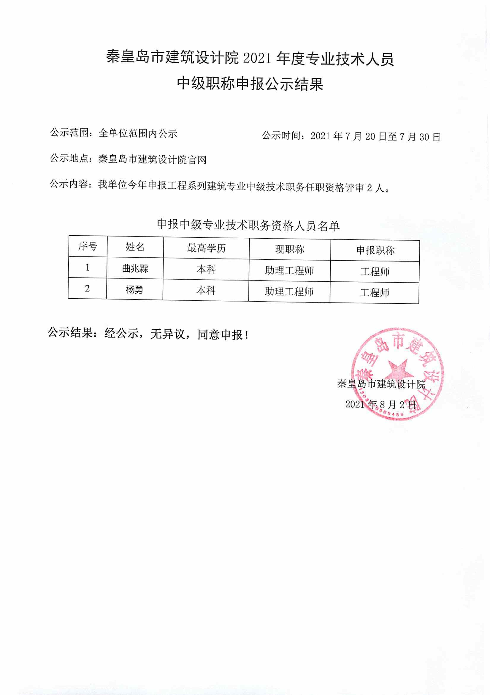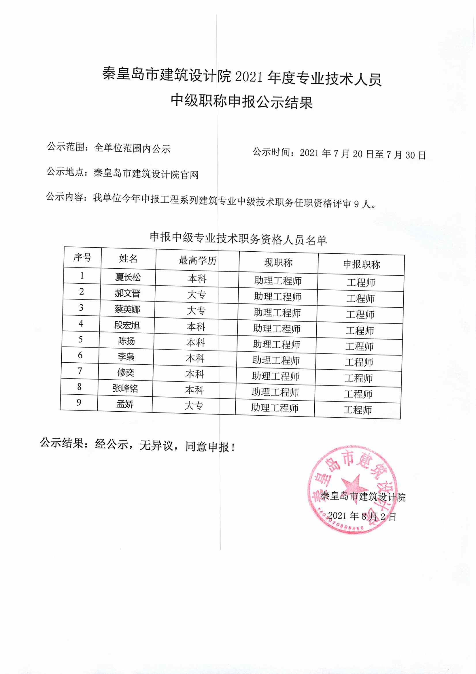 2021職稱公示結(jié)果